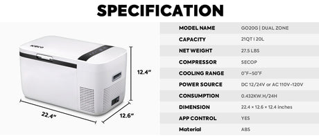 GO20 Dual Zone 12V Portable Freezer| ICECO | 20 LT