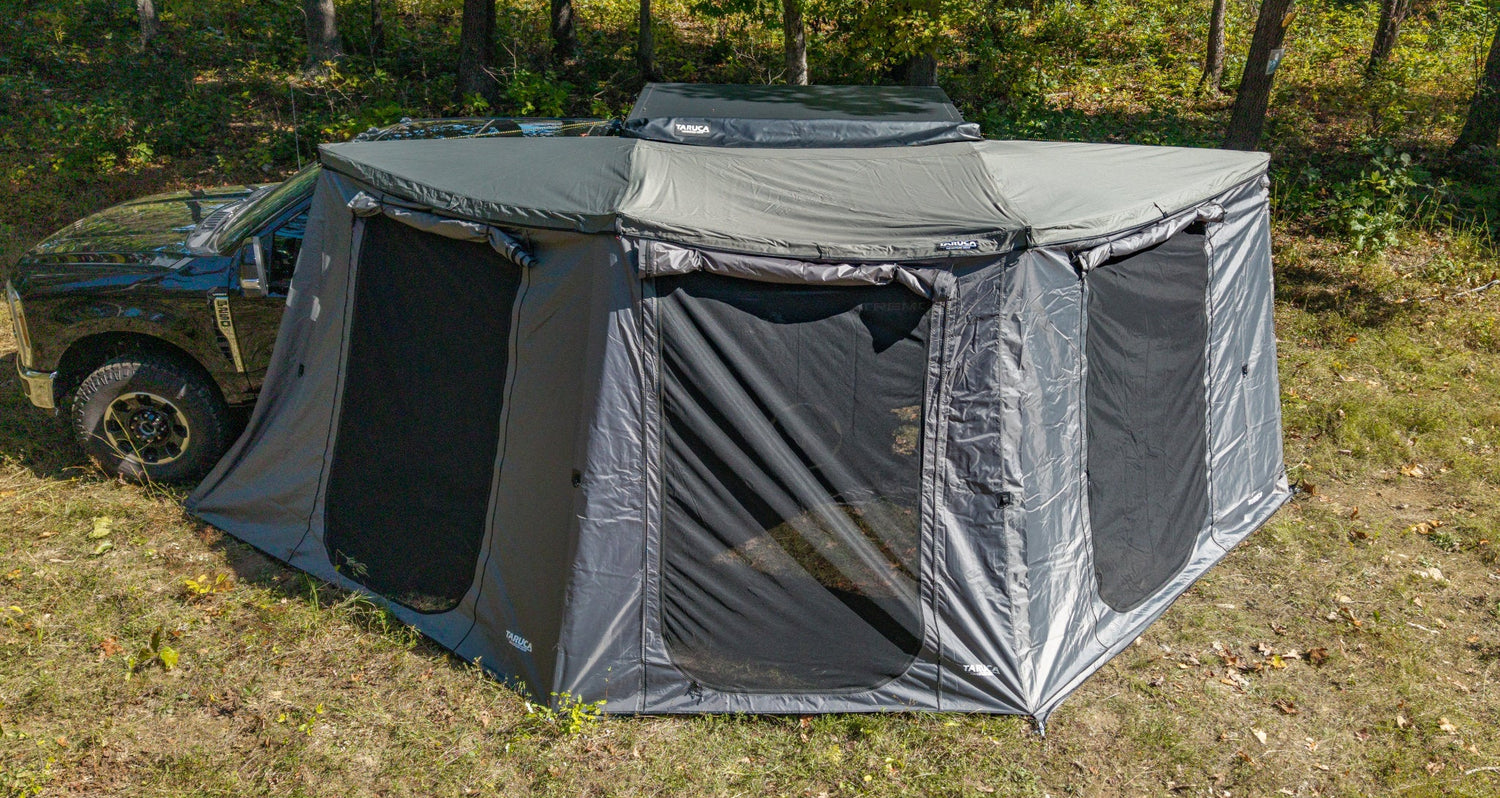 Expanding on the functionality of our awning range, you can now attach this full wall kit enclosure (by the Velcro strips) to the Rogue 180 on the outside and inside of the awning to create a large area as a dry room and storage during your camping trips.