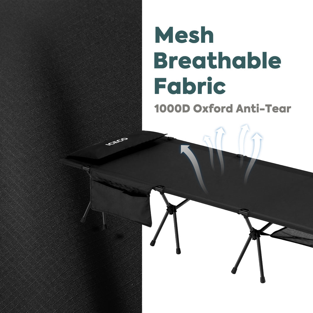【PREMIUM FABRIC MATIRAL】ICECO camping beds are made from tear-resistant 1000D Oxford fabric. With excellent strength, easy cleaning and breathability, it will be more comfortable and durable than other camping beds.
