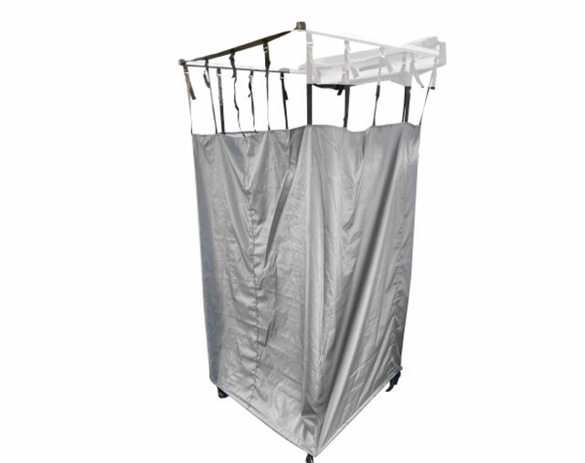 - The front curtain wall features a heavy duty dual sided zip which allows easy access in and out of the Nomadic Car Side Shower.